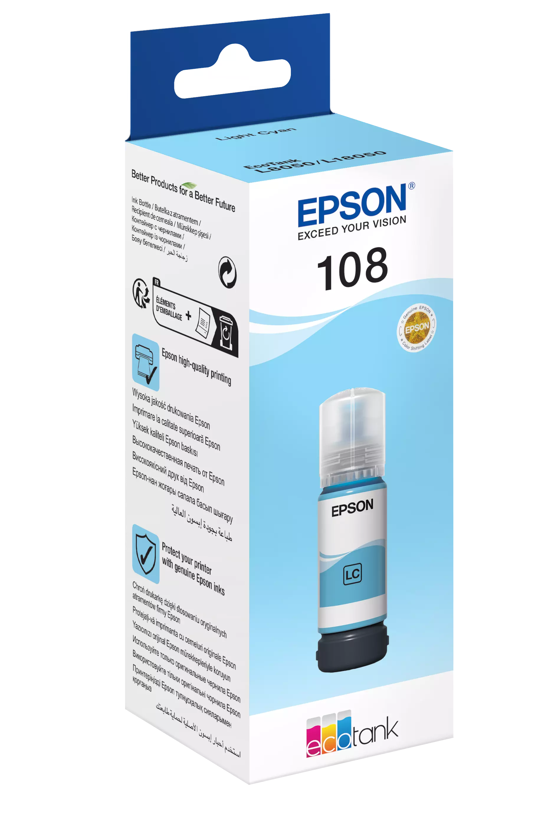 Epson 108 Orijinal Açık Mavi Mürekkep Kartuşu, fotoğraf ve grafik baskılarında daha doğal mavi tonlar ve yumuşak geçişler elde etmenizi sağlar. Epson EcoTank yazıcılarla tam uyumlu olacak şekilde tasarlanan bu kartuş, 70 ml kapasitesi sayesinde uzun ömürlü kullanım imkanı sunar. Profesyonel kalitede fotoğraf baskıları için ideal tercihtir.